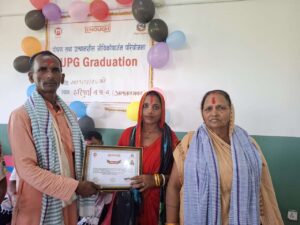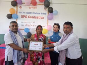 भदौ २७ सर्लाही । वर्ल्ड भिजन ईन्टरनेशनल नेपाल र राष्ट्रिय रोजगार प्रवर्द्धन केन्द्र नेपालको संयुक्त साझेदारीमा संचालित एकीकृत पोषण तथा उत्पादनशिल जिविकोपार्जन परियोजना अन्तरगत यस् हरिपुर्वा नगरपालिकामा UPG MODEL का कार्यक्रम अन्तरगत यस् पालिकाको वडा न.१,२,५,७ र ९ का 2022-2023 मा आबद्ध भएका १ सय १७ घरपरिवारलाई हरिपुर्वा नगरपालिका वडा न. १ स्थित रहेको नगर अस्पतालको भवनमा एक समारोहका बिच graduation कार्यक्रम सम्पन्न गरिएको छ।